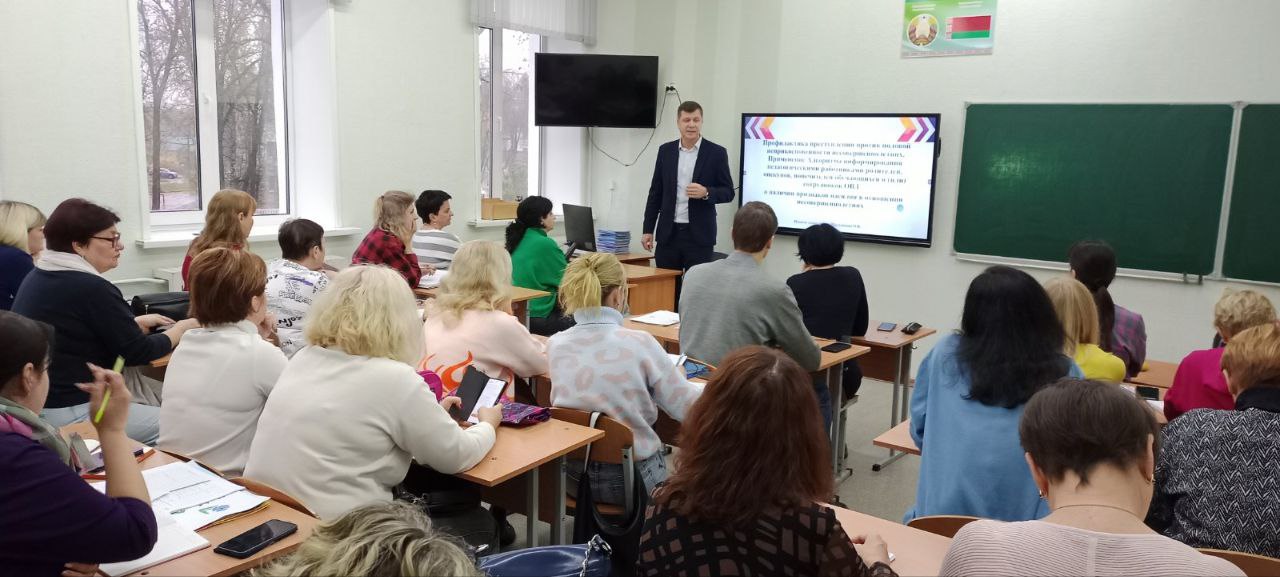 28 октября 2024 года в ГУО «Гимназия №1 г. Витебска имени Ж. И. Алферова» член Совета ВОКА, адвокат юридической консультации №1 г. Витебска Ястреб Д. С. выступил на учебно-методическом объединении классных руководителей на тему "Профилактика применения насилия в отношении несовершеннолетних, в том числе против половой неприкосновенности".