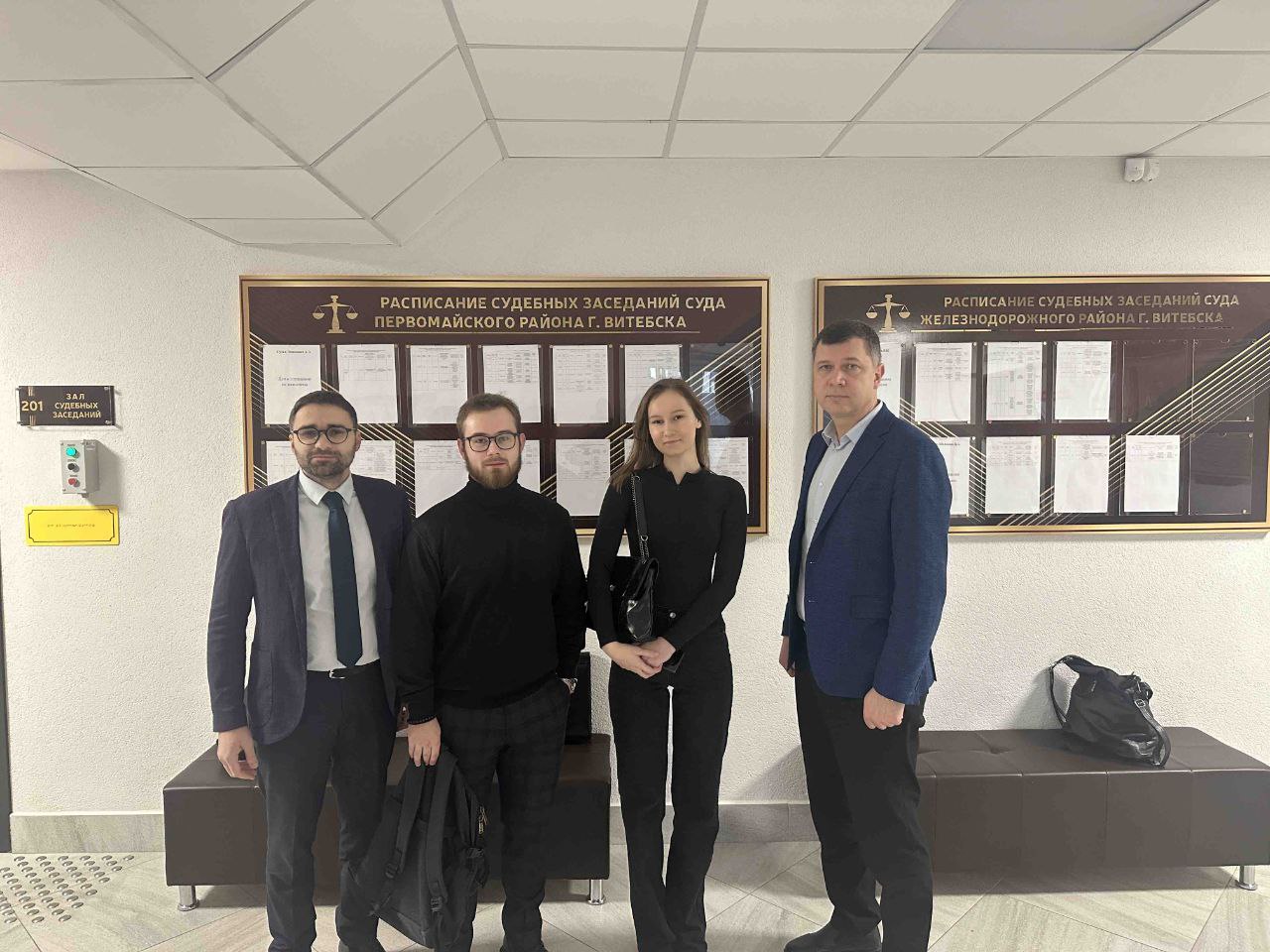 15 января 2025 года студенты юридического факультета ВГУ имени П.М.Машерова присутствовали в суде Первомайского района г. Витебска при рассмотрении уголовного и гражданского дел с участием заведующего юридической консультацией №1 г. Витебска Петухова Евгения и адвоката юридической консультации №1 г. Витебска Ястреба Дениса.
