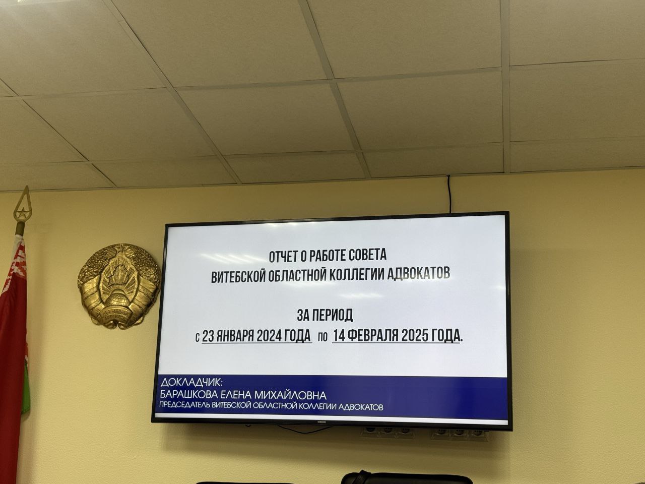 14 февраля 2025 года прошла отчетная конференция по итогам 2024 года Витебской областной коллегии адвокатов. В мероприятии также участвуют начальник управления адвокатуры и лицензирования юридической деятельности Министерства юстиции Республики Беларусь Подлесская Диана, заместитель председателя Белорусской Республиканской коллегии адвокатов Демидович Виталий, заместитель начальника Главного управления юстиции Витебского областного исполнительного комитета Быкова Марина.