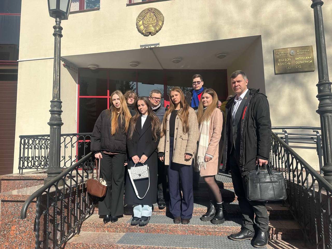 10 марта 2026 года студенты юридического факультета УО "ВГУ имени П.М.Машерова" присутствовали в Витебском областном суде при рассмотрении апелляционных жалоб на приговор суда по ч. 2 ст. 317 УК с участием адвокатов юридической консультации № 1 и юридической консультации № 2 г.Витебска Дениса Ястреба и Дмитрия Корунного.