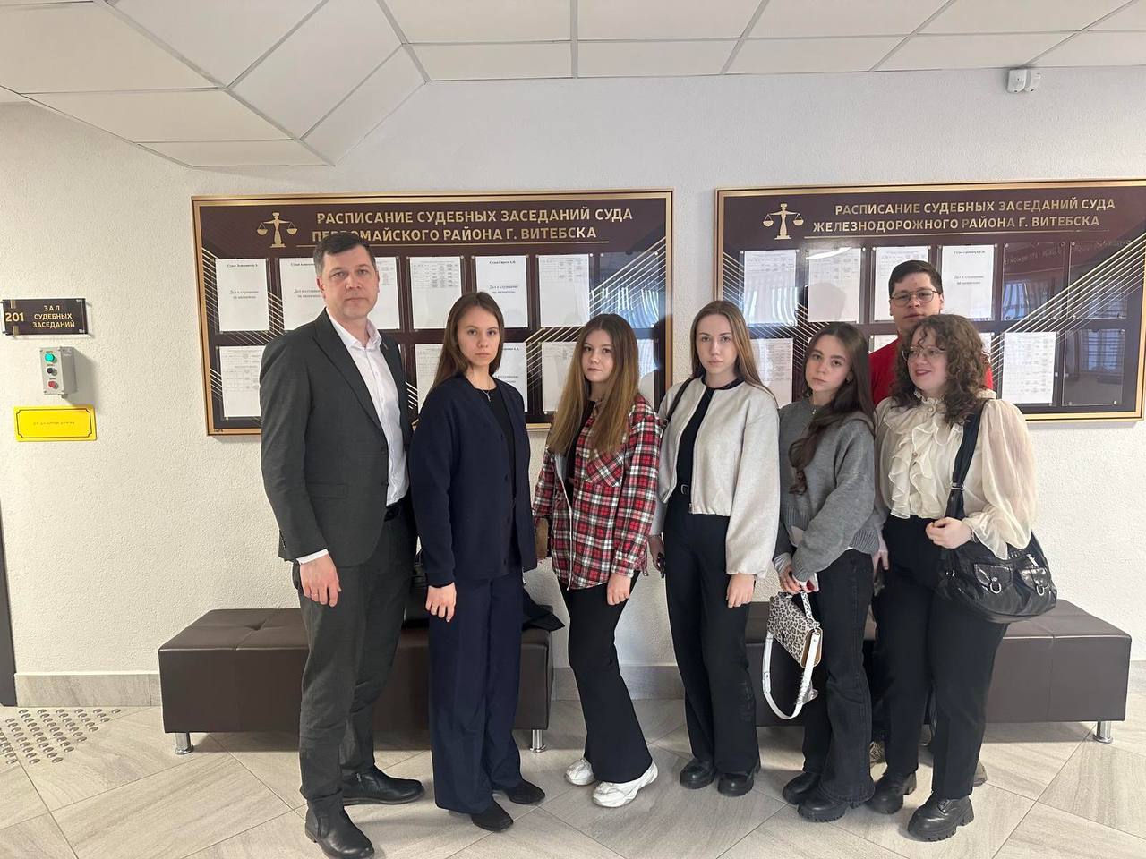 08 апреля 2026 года студенты юридического факультета УО "ВГУ имени П.М.Машерова" присутствовали в суде Октябрьского района г. Витебска при рассмотрении гражданского дела о взыскании денежной компенсации морального вреда с участием адвоката юридической консультации № 1 г.Витебска Дениса Ястреба.