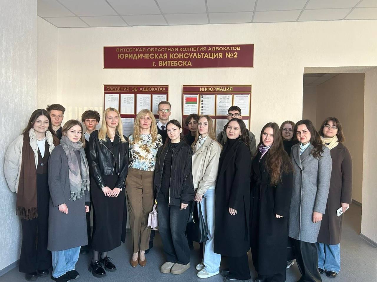 24 марта 2026 года на базе юридической консультации № 1 г.Витебска в рамках договора о сотрудничестве между УО "Витебский государственный университет им. П.М.Машерова" и Витебской областной коллегией адвокатов прошло профориентационное занятие со студентами 3 курса юридического факультета.