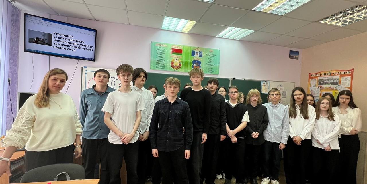 13 апреля 2026 года заведующий юридической консультацией г.Новополоцка Елена Гриневич провела лекцию для учащихся 9-х классов ГУО "Средняя школа № 6 г.Полоцка" на тему "Уголовная ответственность несовершеннолетних за незаконный оборот наркотиков".